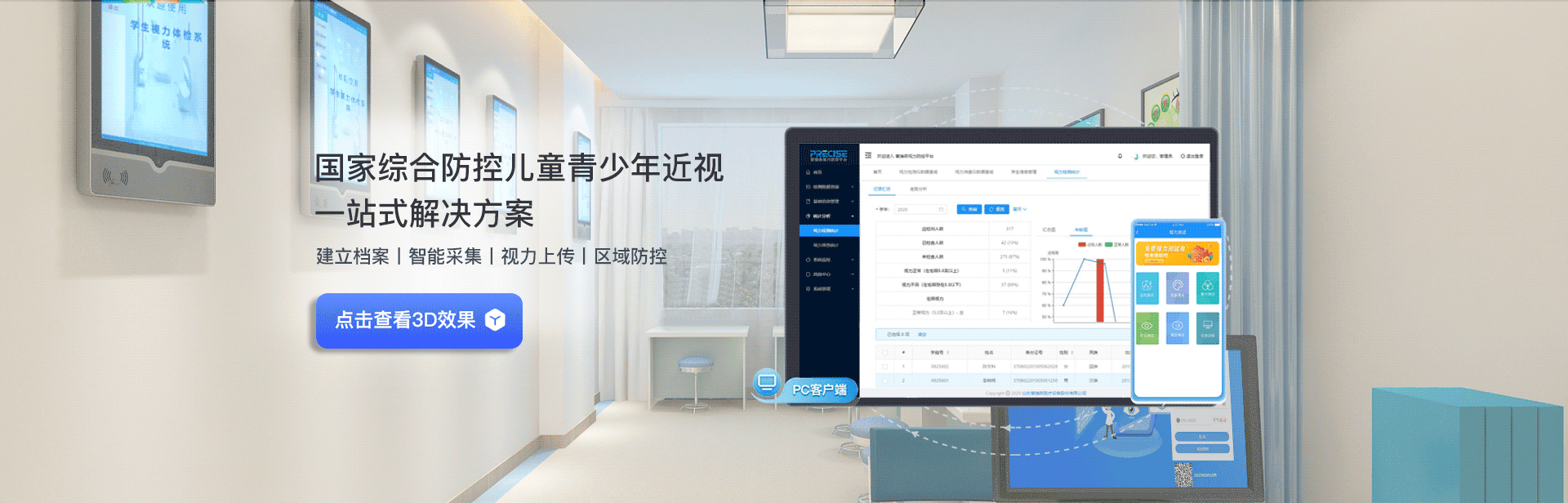 普瑞森青少年視力防控平臺是運用互聯(lián)網(wǎng)、物聯(lián)網(wǎng)和移動通信等技術(shù)快速篩查青少年視力并建立健康檔案的系統(tǒng)。由近視防控數(shù)據(jù)管理軟件系統(tǒng)、電子視力檢測儀、視力篩查儀組成,通過視力檢測篩查設(shè)備,自助采集匯總數(shù)據(jù)并上傳至云平臺。支持視力數(shù)據(jù)采集、查詢、統(tǒng)計、分析、存檔于一體,通過分析體檢者視力發(fā)展趨勢,對不同視力人群進行健康干預(yù)和指導(dǎo)。