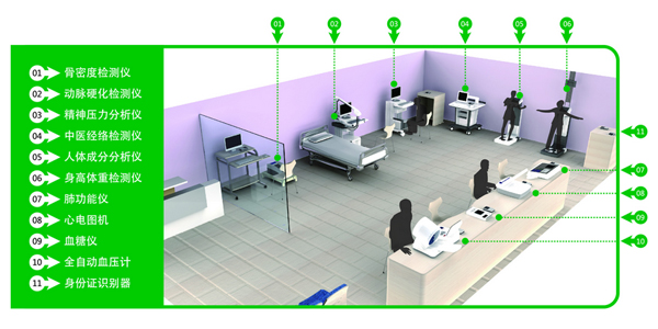 健康小屋簡介定位于需要經(jīng)常測量身高、血壓、心電等健康數(shù)據(jù)的人群,例如社區(qū)中的老年群體、機(jī)關(guān)單位的工作人員等。產(chǎn)品適用于社區(qū)或單位采購,用于社康中心、