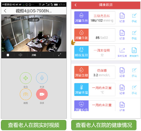 家屬可通過智能化管理系統(tǒng)清晰明了的看到老人每天的身體情況、護(hù)理情況、日;顒、各項(xiàng)消費(fèi)及可用余額;還能查看老人視頻、照片、進(jìn)行在線充值繳費(fèi)。